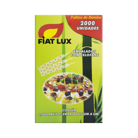 5 Pacotes Palito de Bambu Fiat Lux - 2000 UnidadesPrático e Higiênico para seu Estabelecimento ou EventoO Palito de Bambu Fiat Lux é a escolha ideal para restaurantes, bares, festas e até mesmo para o salão de festas da sua casa. Com 2000 unidades por embalagem, esses palitos são embalados individualmente com papel celofane, garantindo a segurança, limpeza e assepsia necessárias em ambientes alimentícios.Diferenciais:Feito de bambu com tratamento especial, os palitos da marca Fiat Lux são ultra resistentes e não desfiam.Embalagem individual com celofane mantém os palitos higienizados e prontos para uso.Ideal para lanchonetes, cafés, restaurantes e eventos onde a praticidade e higiene são essenciais.Mais sobre o Produto:Os Palitos de Bambu Fiat Lux são perfeitos para servir petiscos, aperitivos e até mesmo para cuidados com a higiene bucal. Seu material resistente e embalagem individual garantem praticidade no uso diário em qualquer estabelecimento.Dicas de Uso:Utilize os palitos para servir petiscos, mexer bebidas ou até mesmo como apoio para higiene bucal. Sua embalagem individual facilita o manuseio e garante a limpeza necessária para o contato com alimentos.Ficha Técnica:Marca: Fiat LuxQuantidade: 5 Pacotes com 2000 unidadesMaterial: BambuEmbalagem: Individual com celofane