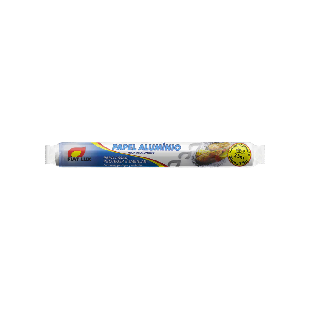 Rolo de Papel Alumínio Fiat Lux 30cm x 7,5m - Fiat LuxProteção e Versatilidade para sua CozinhaO Rolo de Papel Alumínio Fiat Lux é a solução ideal para proteger, embalar e conservar alimentos na sua cozinha. Com dimensões de 30cm de largura por 7,5m de comprimento, este produto é indicado para uso doméstico, proporcionando praticidade e segurança no dia a dia.Com a marca Fiat Lux, referência em qualidade, esse rolo de papel alumínio suporta diferentes temperaturas, podendo ir do forno ao congelador sem preocupações. Além disso, a resistência do material garante uma proteção eficaz durante o preparo, cozimento e armazenamento dos alimentos.Diferenciais:Dimensões ideais de 30cm x 7,5m para uso domésticoSuporta variações de temperatura, do forno ao congeladorMaterial resistente e de alta qualidadeProtege e embala alimentos de forma práticaMais sobre o Produto:O Rolo de Papel Alumínio Fiat Lux é essencial para cobrir assados, preservar o frescor de alimentos e evitar odores na geladeira. Além disso, pode ser utilizado para embrulhar sanduíches, proteger utensílios na cozinha e até mesmo para facilitar a limpeza de formas e assadeiras. Sua versatilidade faz dele um item indispensável em qualquer casa.Dicas de Uso:Na hora de utilizar o Rolo de Papel Alumínio Fiat Lux, lembre-se de cortar o tamanho necessário para cobrir o alimento de forma adequada, evitando desperdícios. Ao embalar alimentos para armazenar na geladeira, certifique-se de selar bem as extremidades para manter a frescura e sabor dos alimentos por mais tempo. Além disso, ao levar ao forno, verifique a temperatura máxima suportada pelo papel alumínio para garantir um cozimento seguro e eficiente.Ficha Técnica:Nome: Rolo de Papel Alumínio Fiat Lux 30cm x 7,5mMarca: Fiat LuxMaterial: AlumínioDimensões: 30cm x 7,5mUso: Doméstico Quantidade: 24